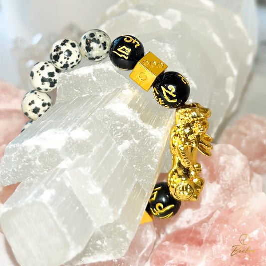 Dalmatian Jasper with Pixiu and Fortune Charm